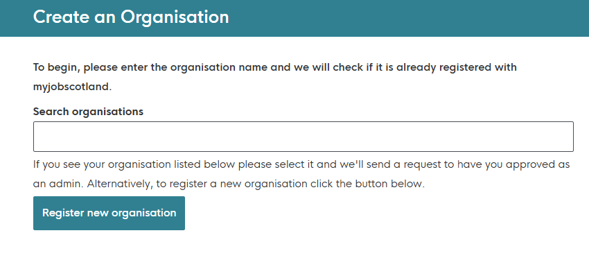 You will then be able to add a description for your organisation along with a logo and header image to populate your organisations page on myjobscotland. This can be accessed by logging into your account and selecting the name of your recently created organisation.